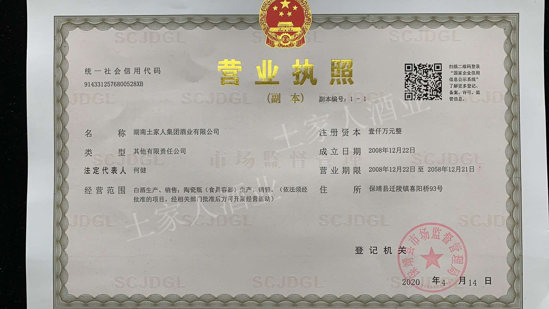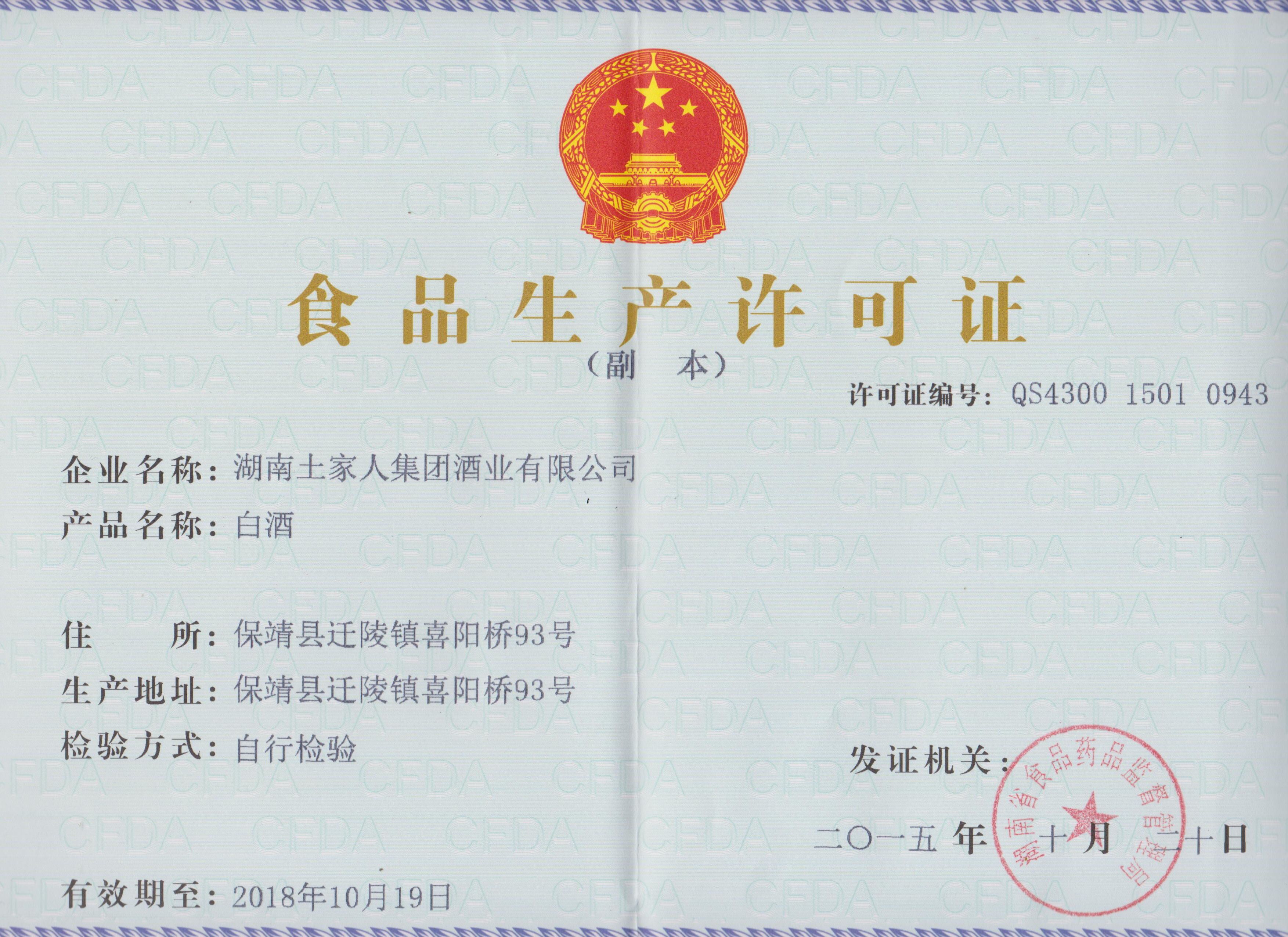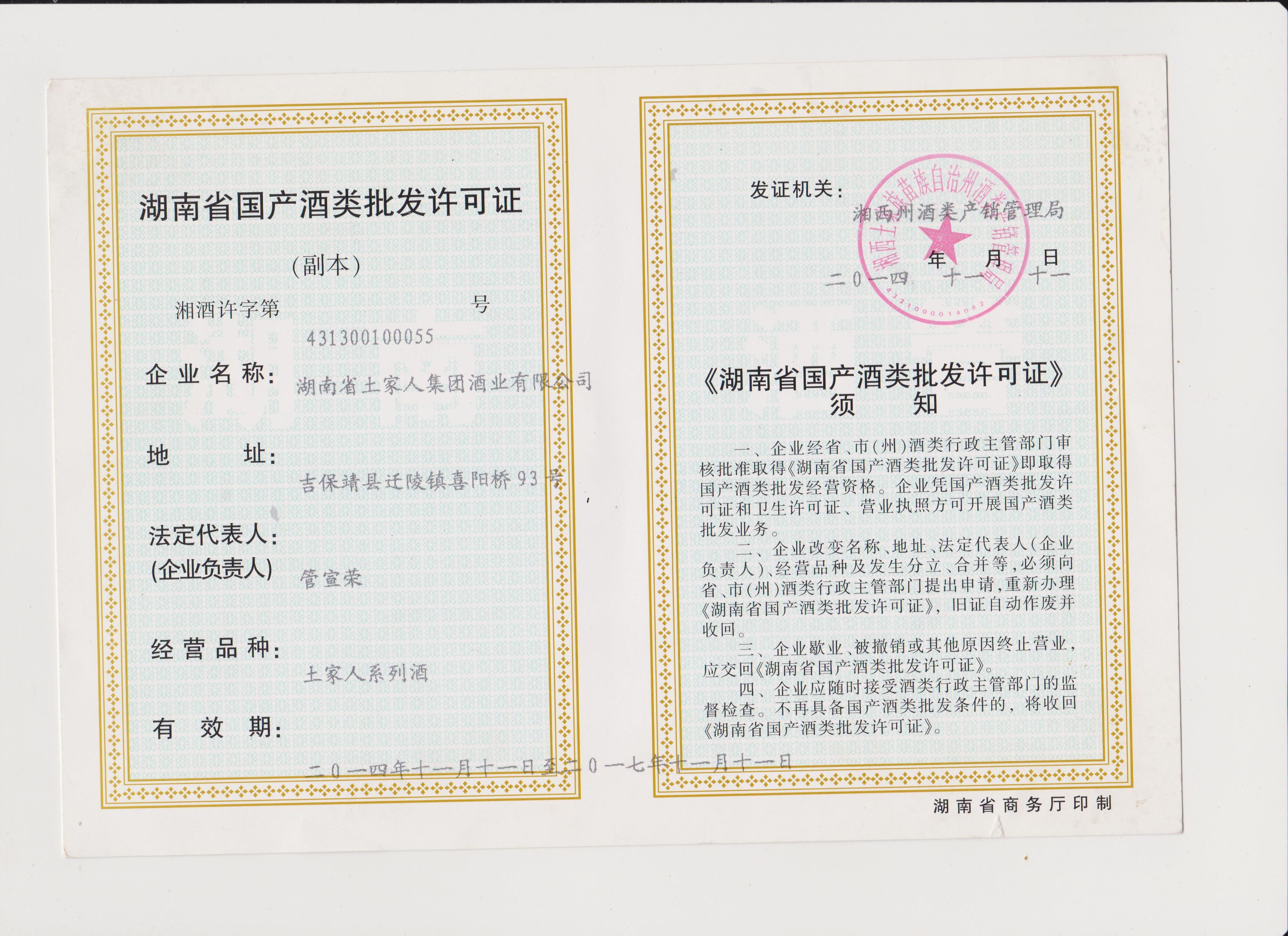 湖南省国产酒类批发许可证